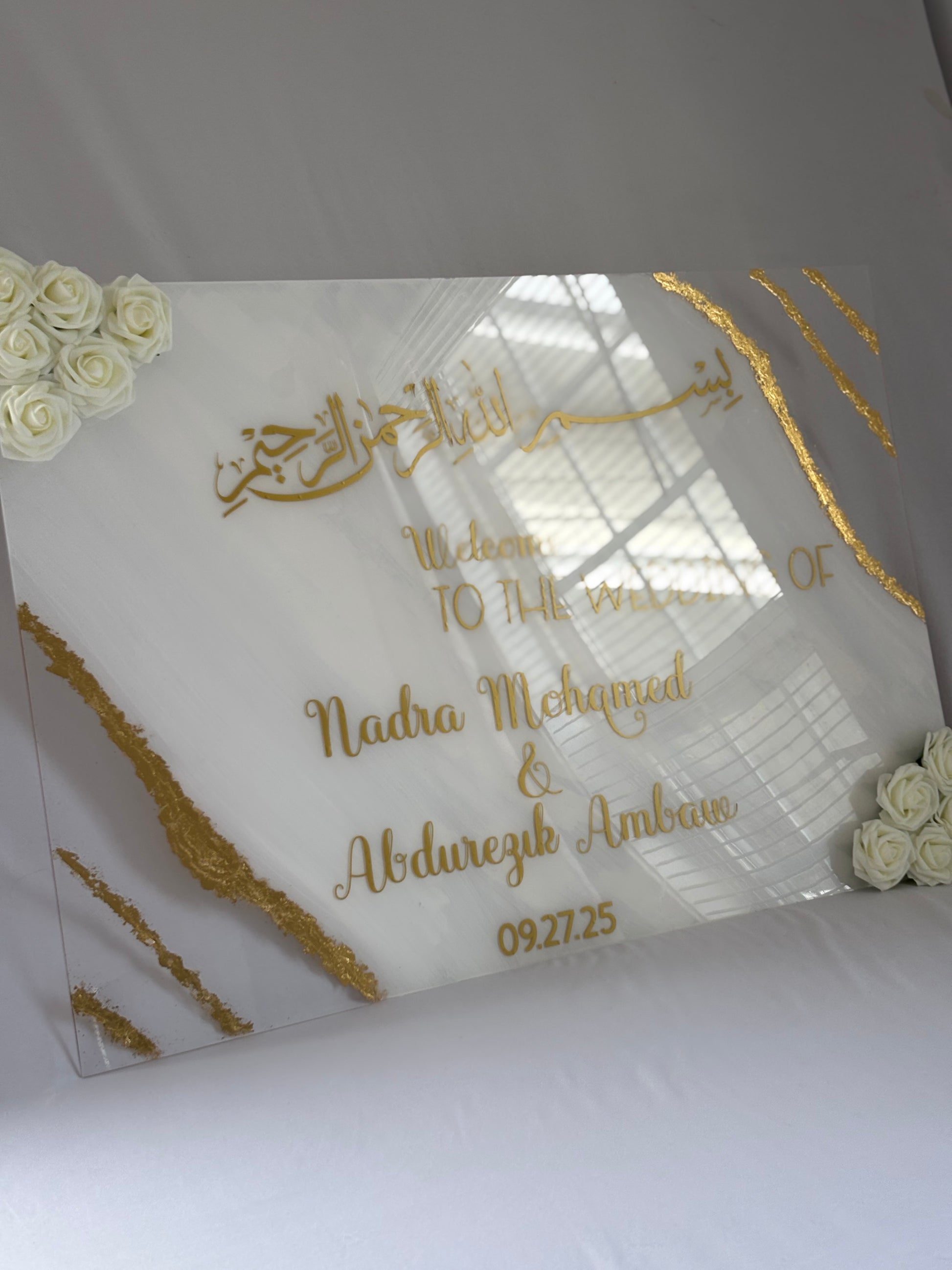 This beautiful piece is both classy and timeless! Choose your background color and text. The design includes gold leaf and floral accents. Leave order details in note!
